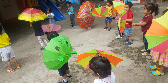 In summer we organize splashing in a poolsituated in Play House premises to beat the heat.